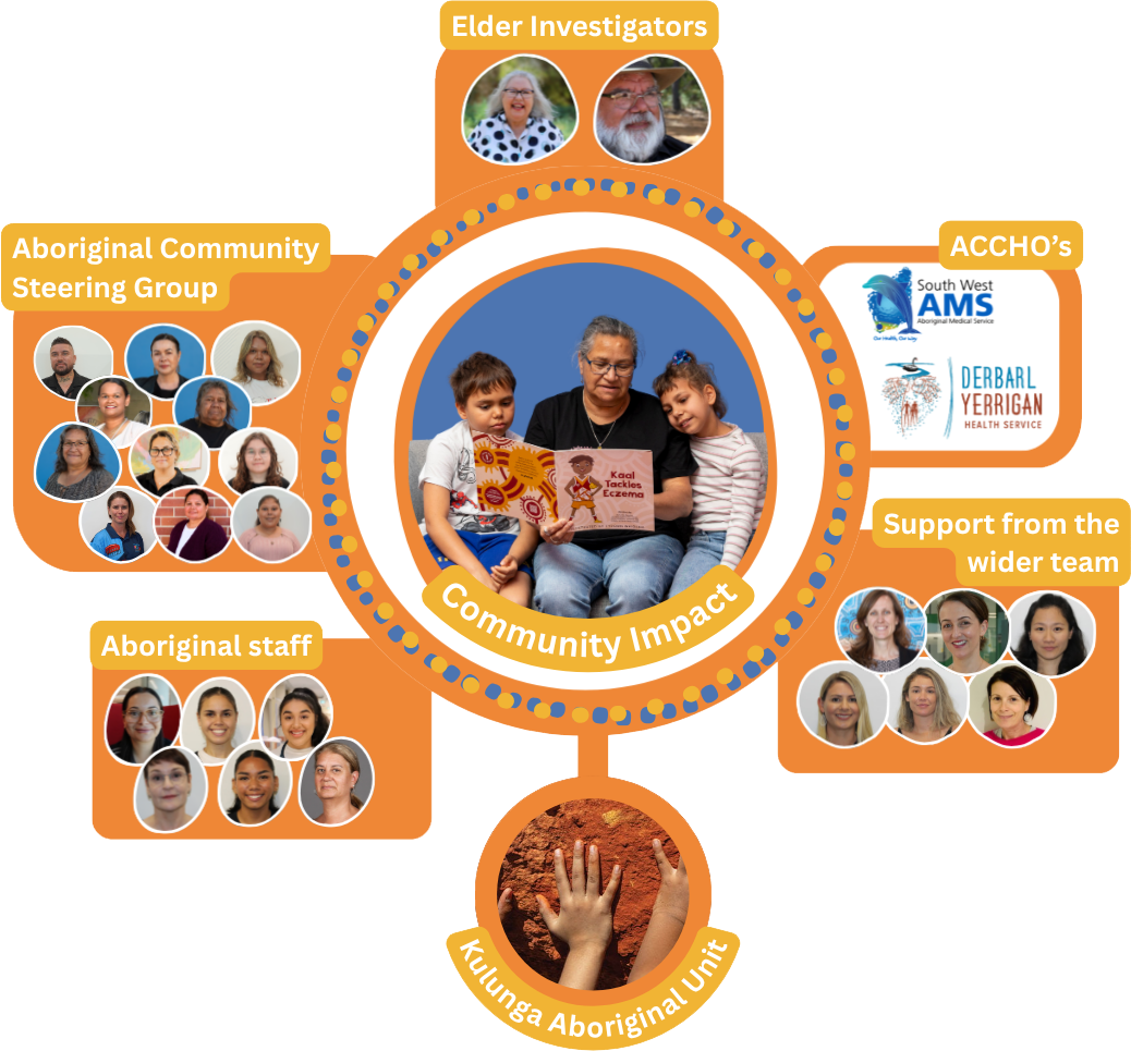 The Aboriginal Community Steering Group provides local leadership, direction, and cultural guidance on the project; and to lead development of culturally appropriate health promotion resources on moorditj healthy skin. Insights from the Steering Group are directly integrated into the design and delivery of resources, ensuring they are relevant, respectful, and empowering for Aboriginal communities.